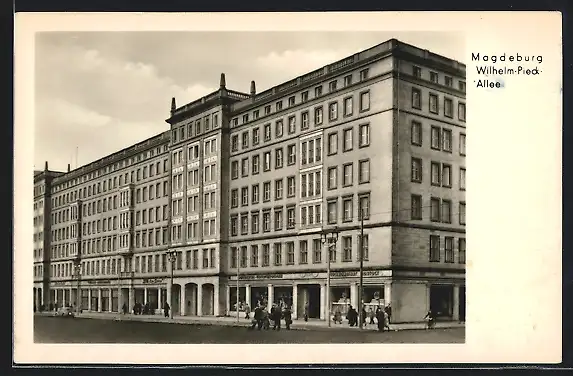 AK Magdeburg, Neubauten in der Wilhelm Pieck-Allee mit Geschäften