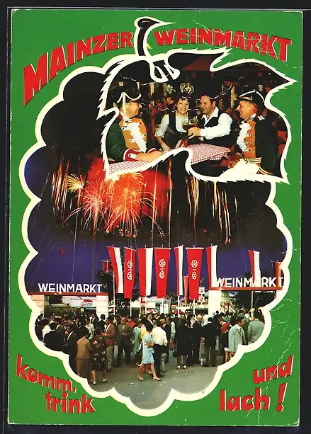 AK Mainz, Mainzer Weinmarkt im Mainzer Volkspark, Feiernde im Gasthaus, Strassenpartie