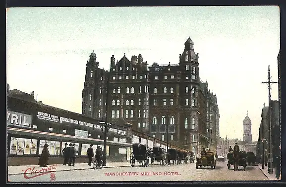 AK Manchester, Strassenpartie am Midland Hotel