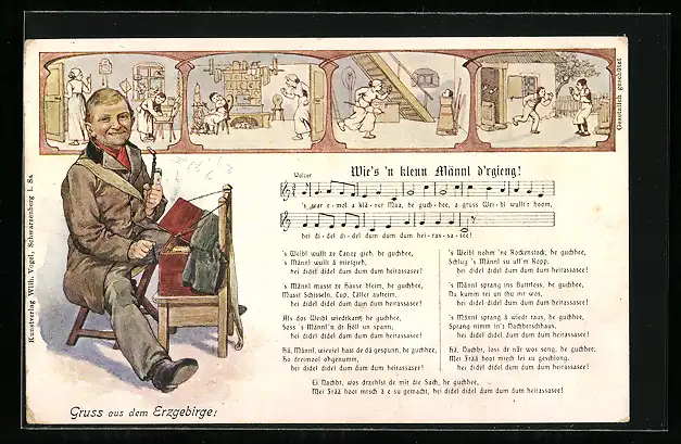 AK Mann mit Leierkasten, Liedtext Wie`s `n klenn Männl d`rgieng!