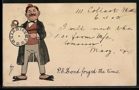 AK Mann mit einer grossen Uhr