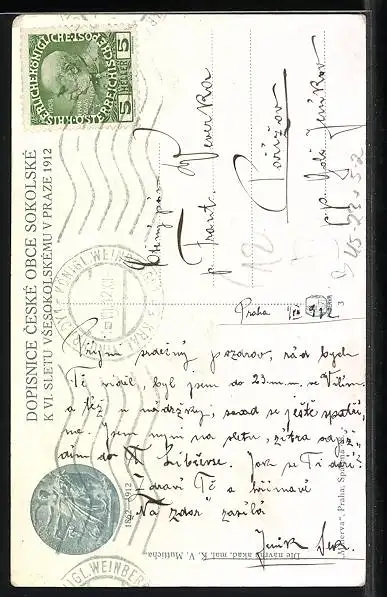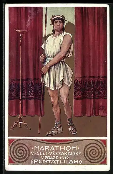 AK Marathon-Pentathlon - Dopisnice Ceske Obce Sokolskè k VI. Sletu Vsesokolskemu v Praze 1912