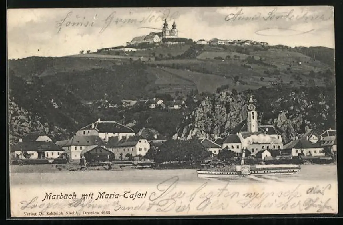 AK Marbach, Teilansicht mit Kirche Maria-Taferl