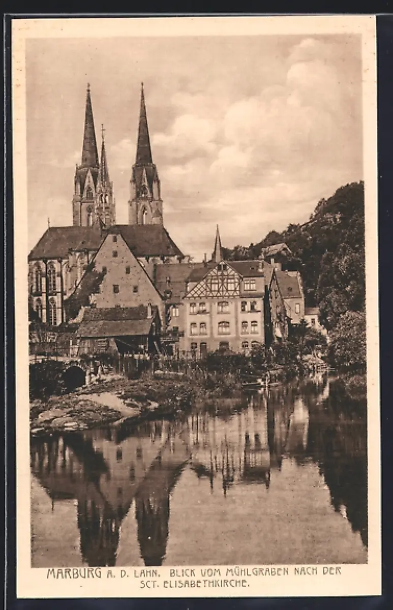 AK Marburg a. d. Lahn, Blick vom Mühlgraben nach der St. Elisabethkirche