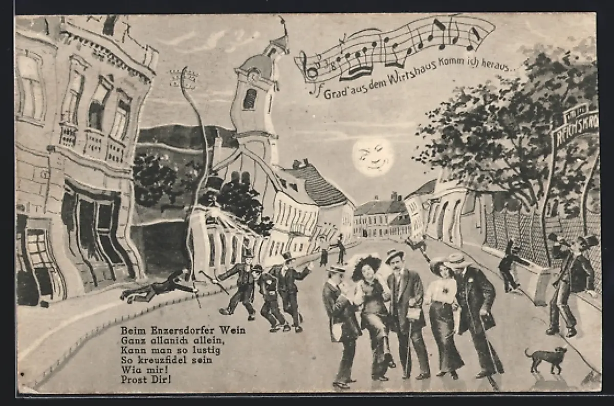 AK Maria Enzersdorf, Strassenpartie aus der Sicht eines Betrunkenen