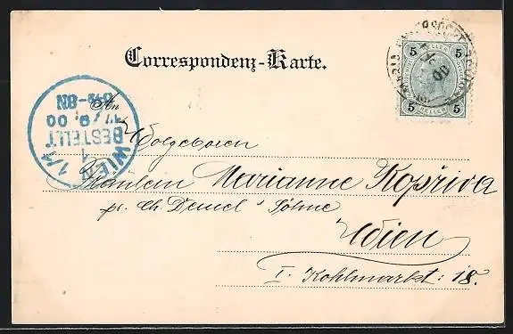 alte Ansichtskarte, gelaufen 1900, guter Zustand