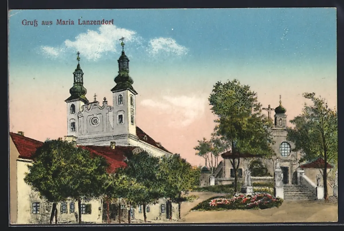 AK Maria Lanzendorf, Ortspartie mit Kirche