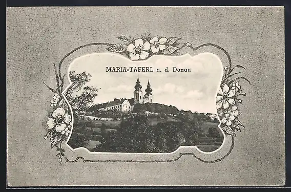 AK Maria-Taferl a. d. Donau, Blick auf die Kirche, Blumen-Passepartout