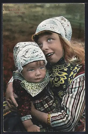 AK Marken, Zwee zusjes, Niederländisches Mädchen mit Kleinkind