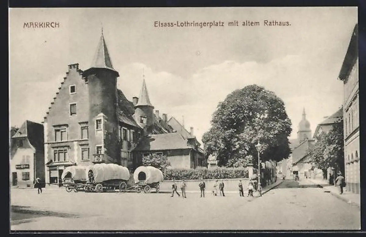 AK Markirch, Elsass-Lothringerplatz mit altem Rathaus