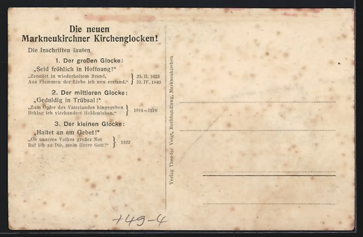 AK Markneukirchen, Die neuen Kirchenglocken, Drei Glcoken