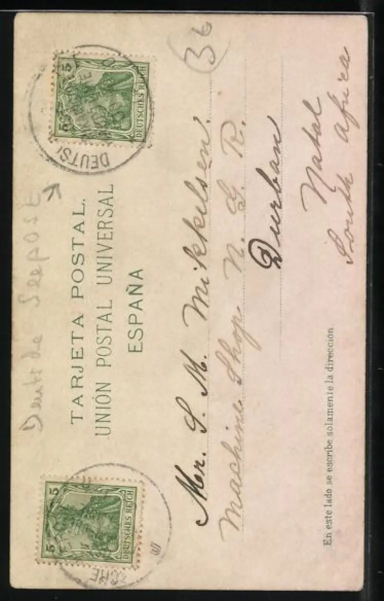 alte Ansichtskarte, gelaufen, Eckknick li. unten, Bugspur mittig