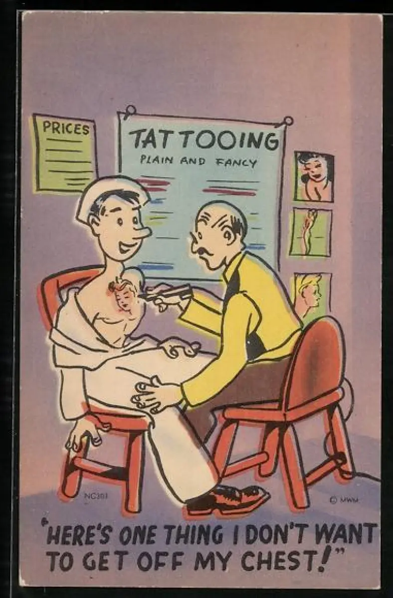 AK Matrose lässt sich ein Frauenporträt auf die Brust tätowieren, Exzentriker