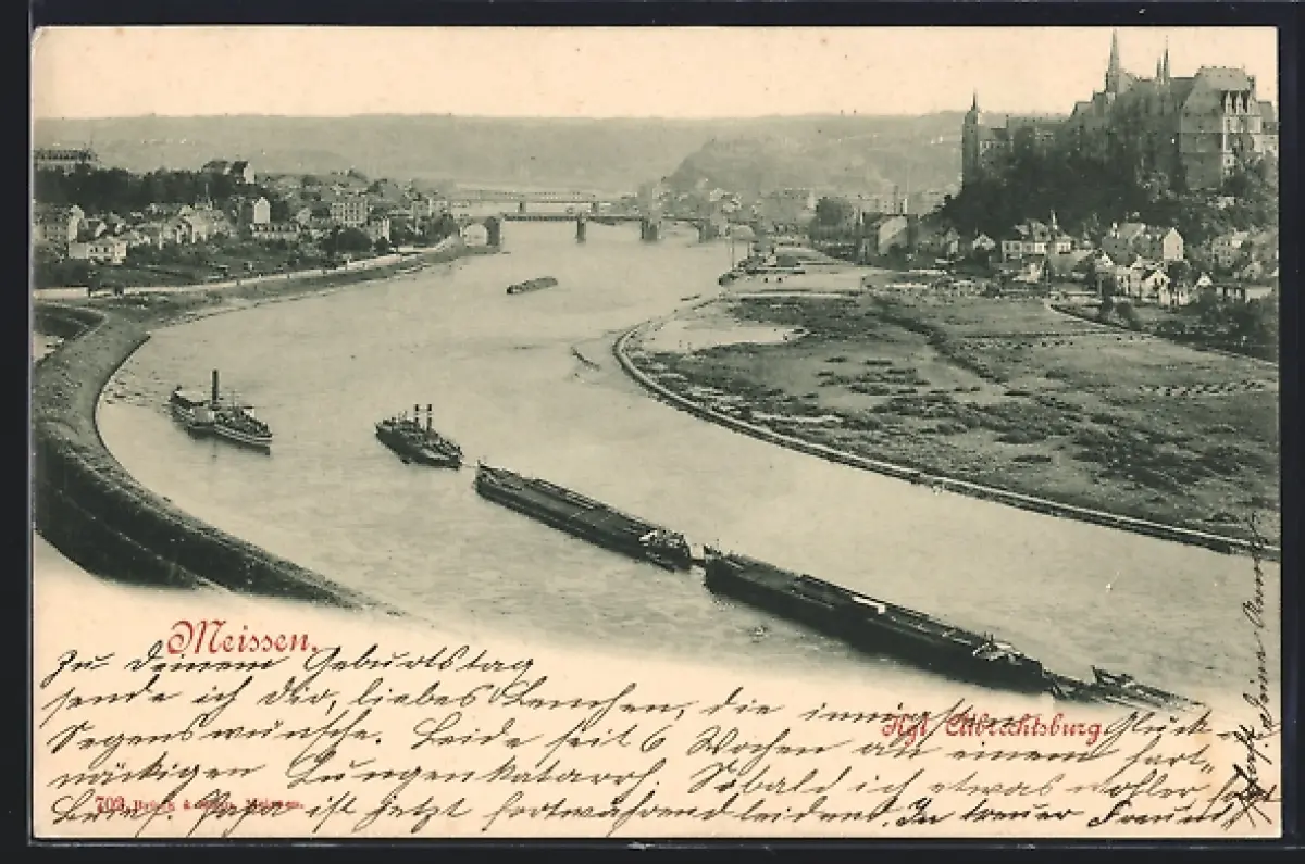 AK Meissen, Elbpanorama mit der Albrechtsburg