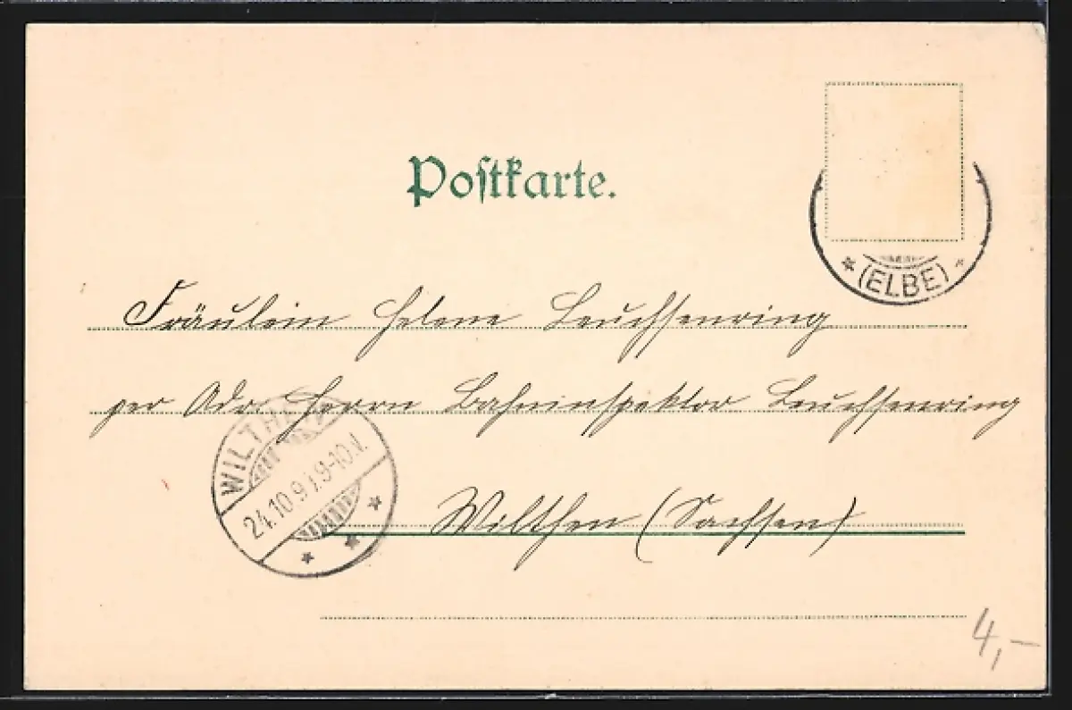 alte Ansichtskarte, gelaufen, Briefmarke entfernt, guter Zustand