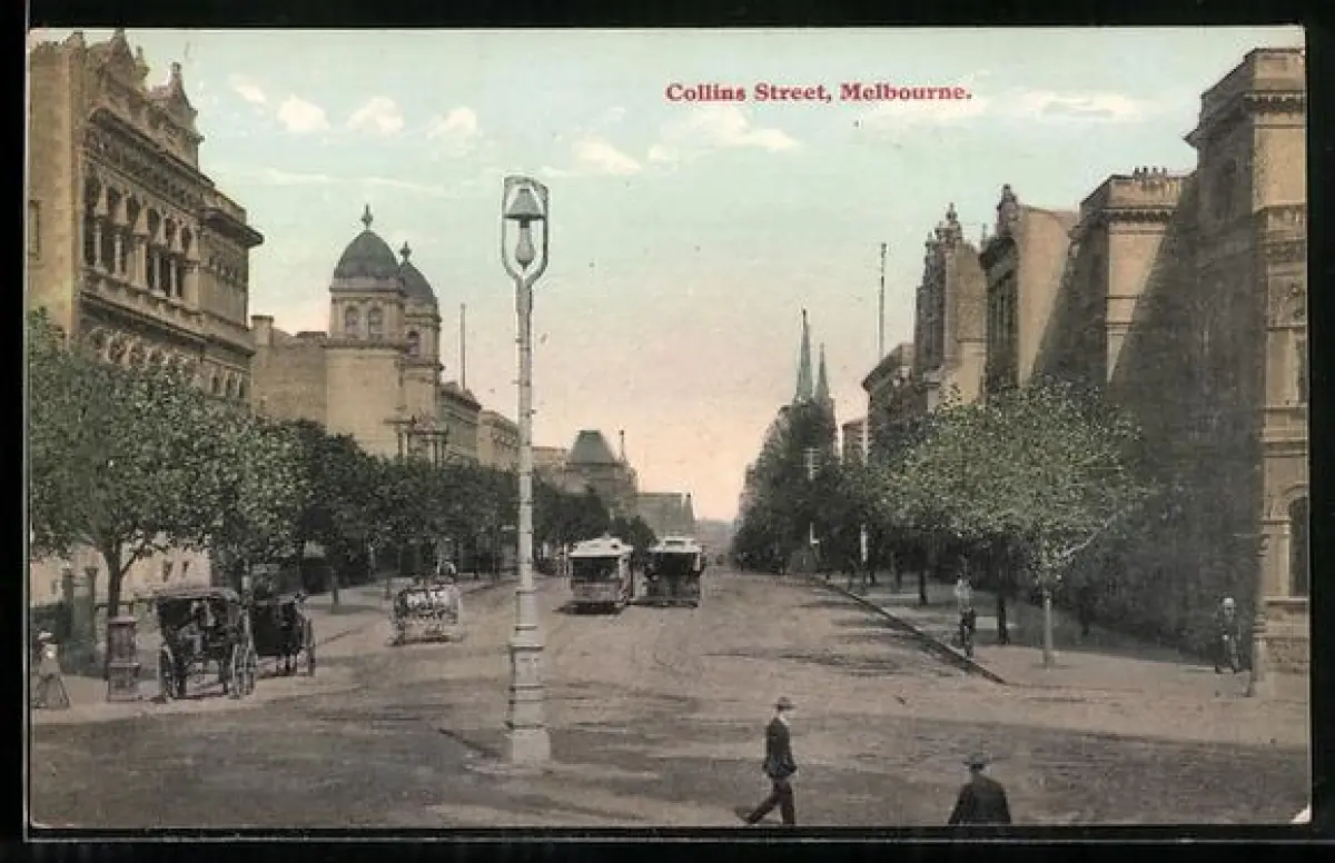 AK Melbourne, Collins Street, Strassenpartie mit Strassenbahn