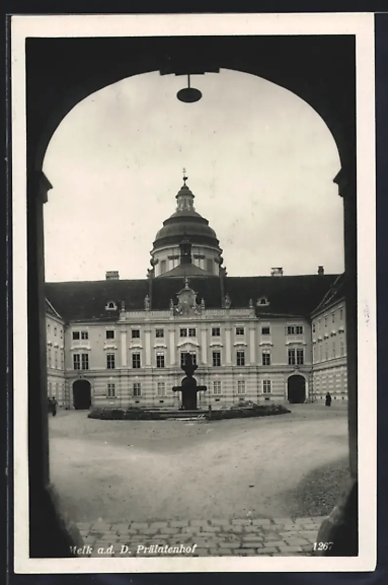 AK Melk a. d. D., Prälatenhof, Ansicht von einem Torbogen aus