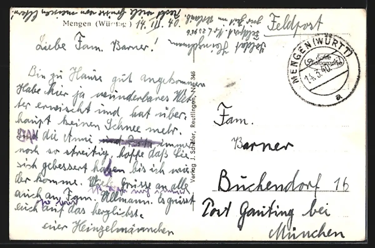 AK Mengen /Württbg., Teilansicht mit Bäumen