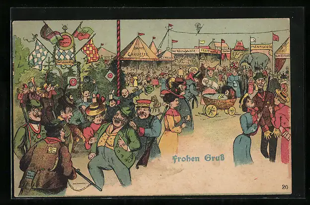 AK Menschen auf dem Volksfest, Jäger, Kinderwagen, Dampf-Carussel