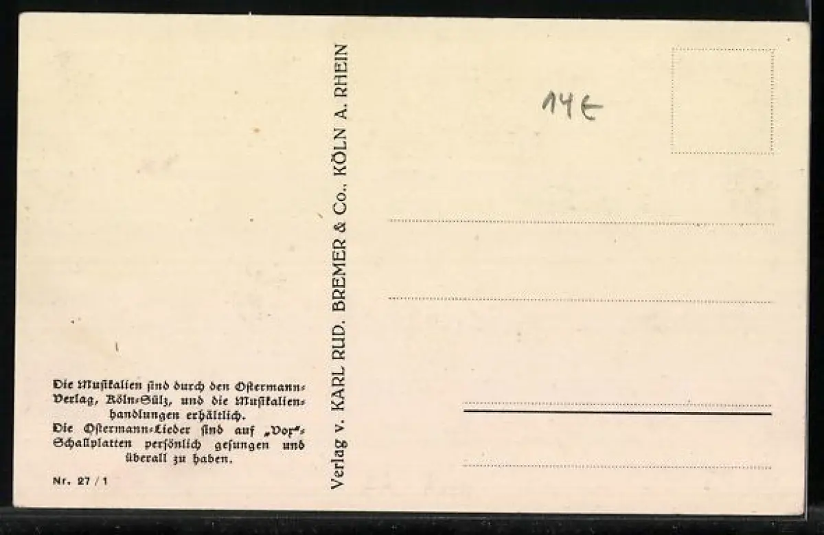 AK Menschen in und vor einem brennenden Haus, Text des Kölner Liedes Kut erop! Kut erop! Kut erop!