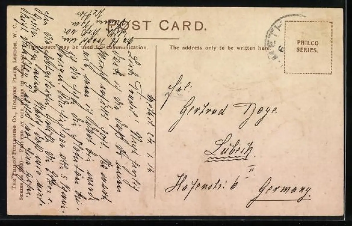 alte Ansichtskarte, gelaufen, Abriebspur li. oben, Briefmarke entfernt, guter Zustand