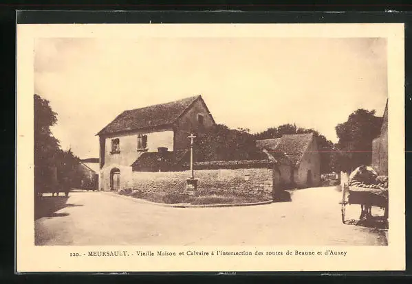 AK Meursault, Vieille Maison et Calvaire à l'intersection des routes de Beaune et d'Auxey
