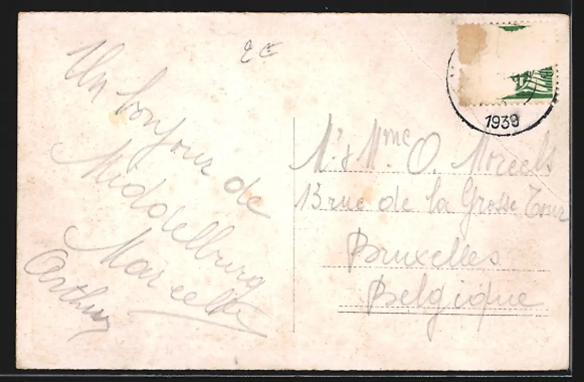 gelaufen 1939, Briefmarke entfernt, rückseitig Oberflächenschaden, Bugspuren li. oben, guter Zustand
