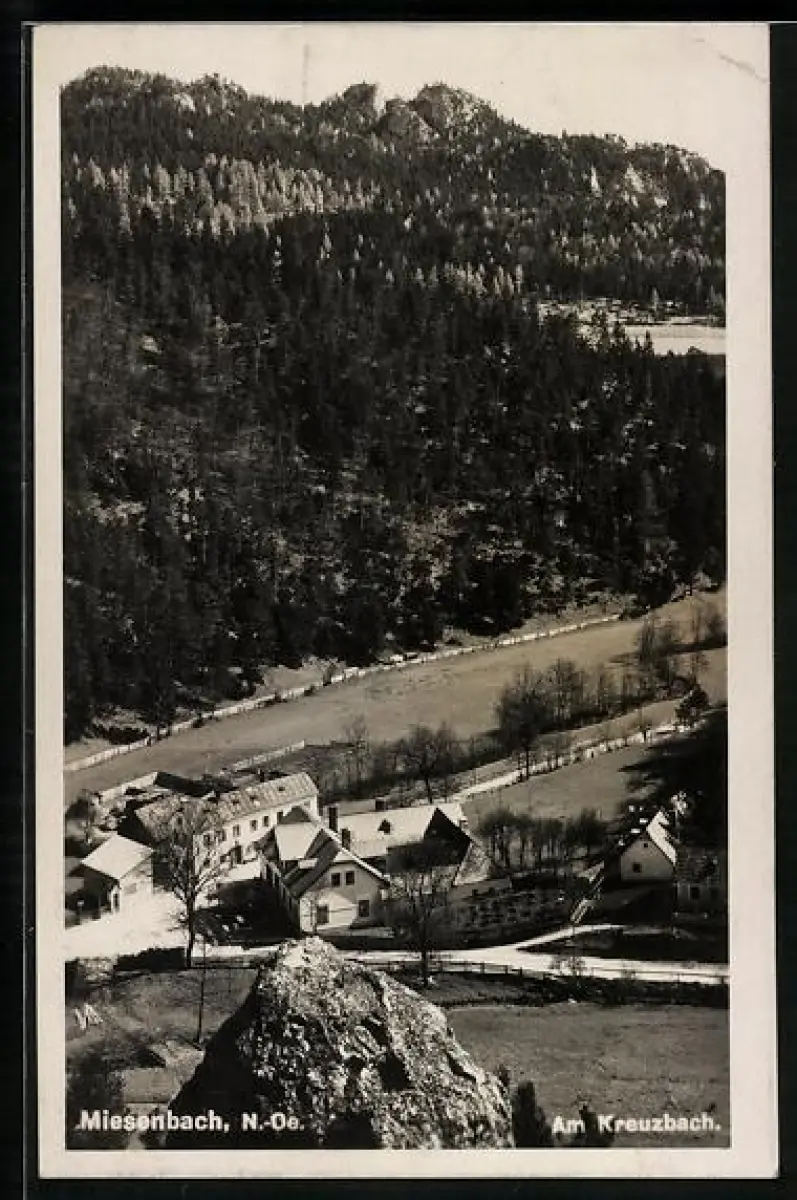 AK Miesenbach /N.-Oe., Am Kreuzbach mit Strassenpartie