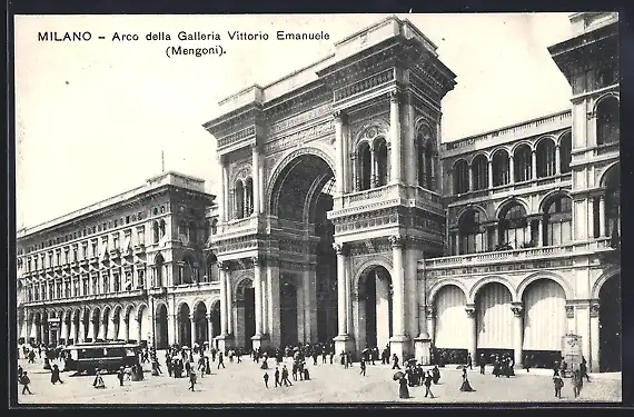 AK Milano, Arco della Galleria Vittorio Emanuele e Tramway, Strassenbahn