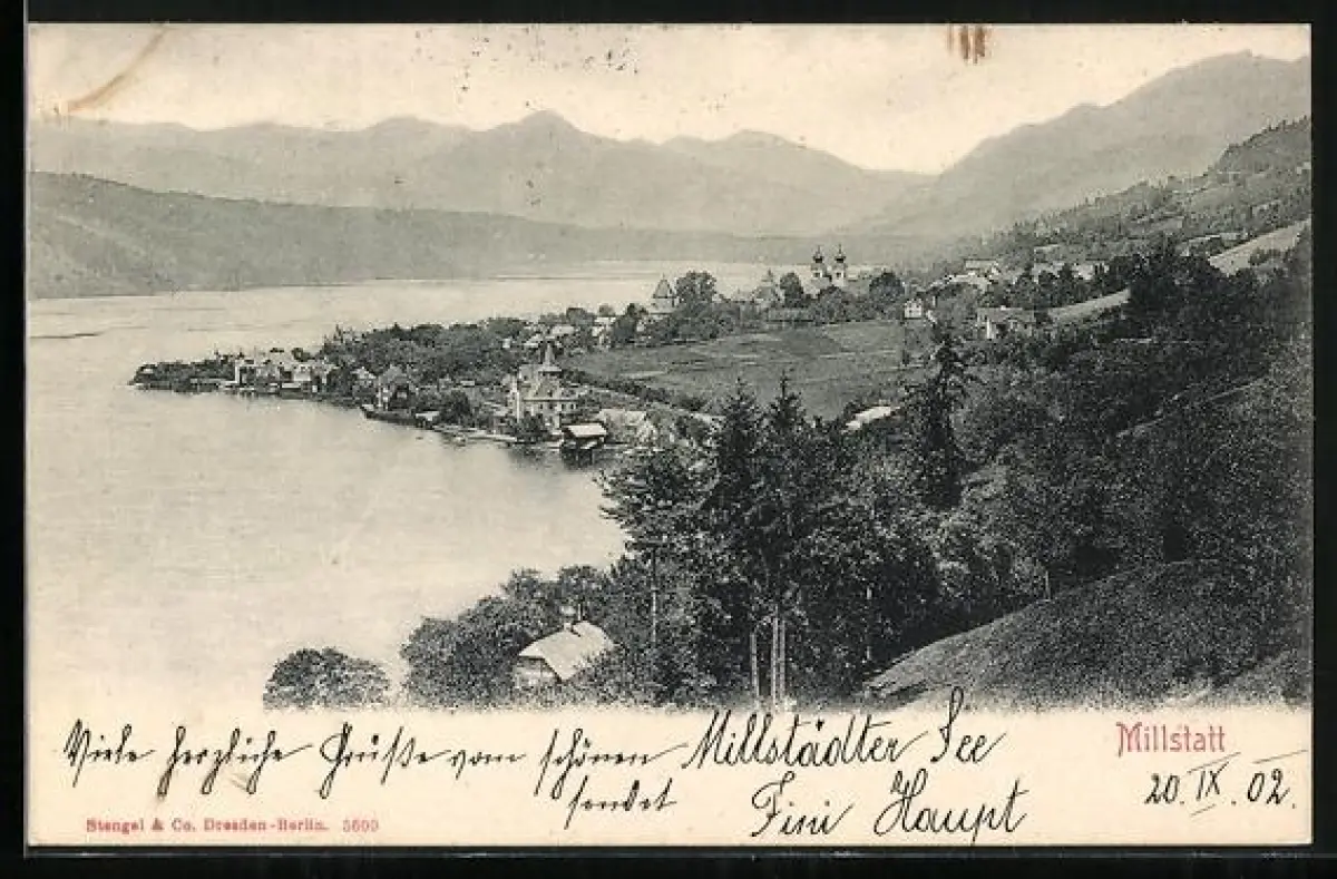 AK Millstatt am See, Ortsansicht aus der Vogelschau