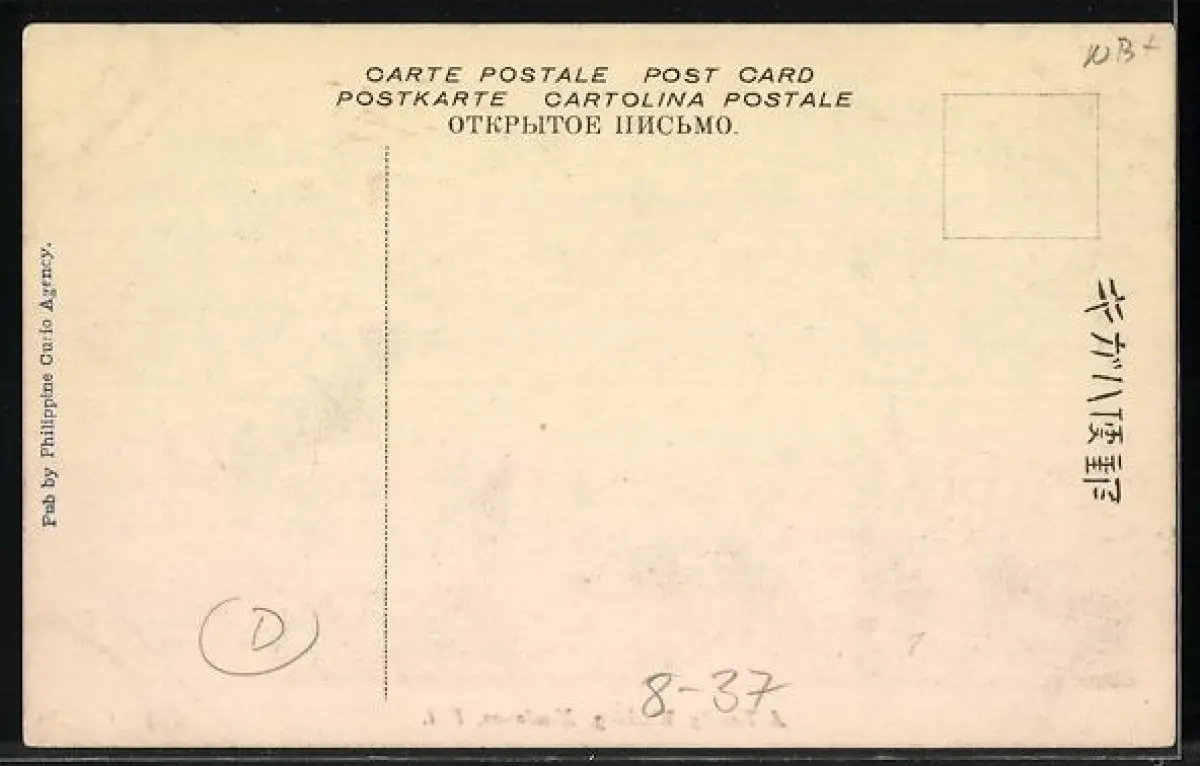 Personenbezogene Daten auf der Rückseite der Karte wurden durch blauen Textmarker unkenntlich gemacht. Die blauen Stellen sind auf die Vorderseite durchgeweicht und wirken sich negativ auf das Postkartenfoto aus