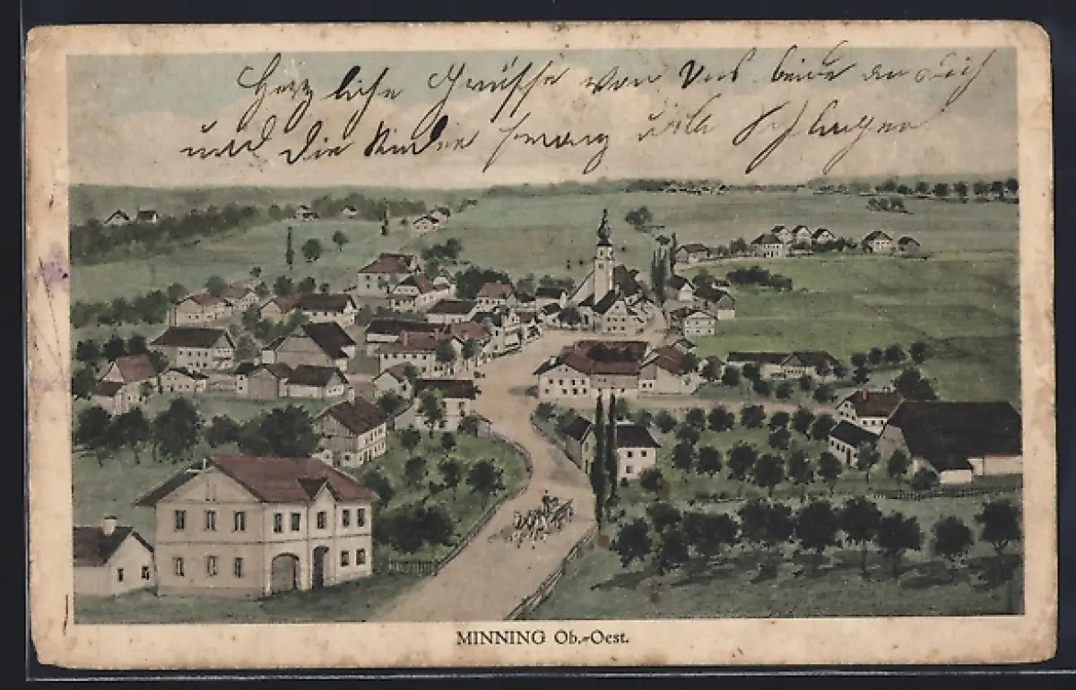 AK Minning, Ortsansicht mit Umgebung aus der Vogelschau