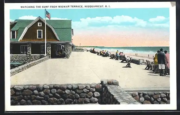 AK Misquamicut, RI, Watching the surf from Wigwam Terrace