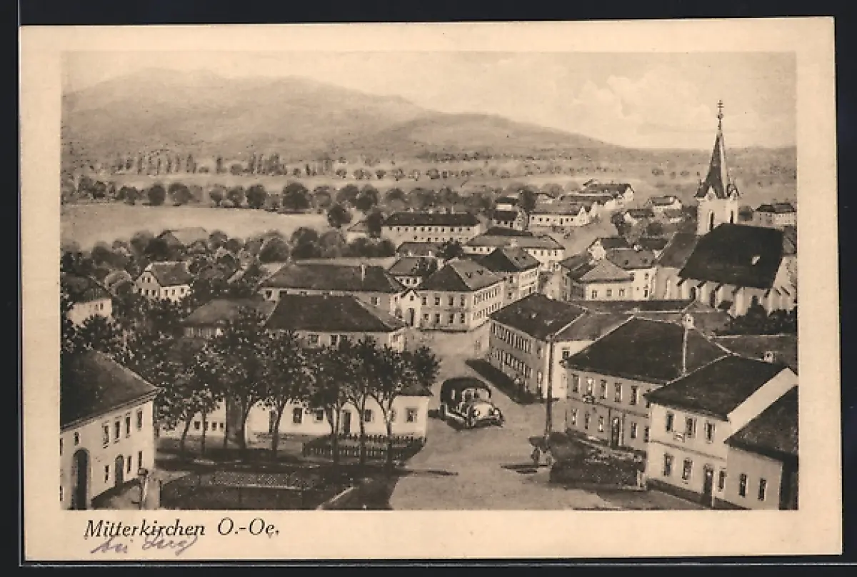 AK Mitterkirchen /O.-Oe., Ortsansicht aus der Vogelschau
