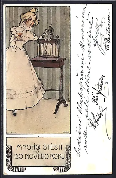 AK Mnoho Stesti do Noveho Roku, es schlägt 12 zum neuen Jahr, Jugendstil