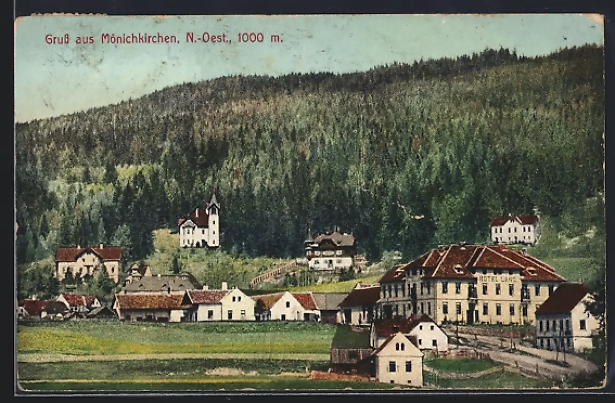 AK Mönichkirchen /N.-Oest., Ortspartie mit Hotel Lang