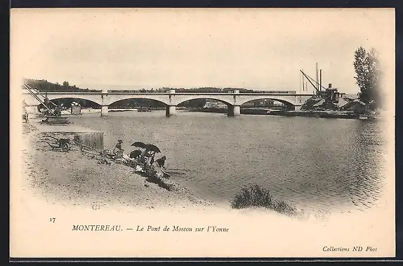 AK Montereau, Le Pont de Monceau sur l`Yonne avec des promeneurs au bord de l`eau
