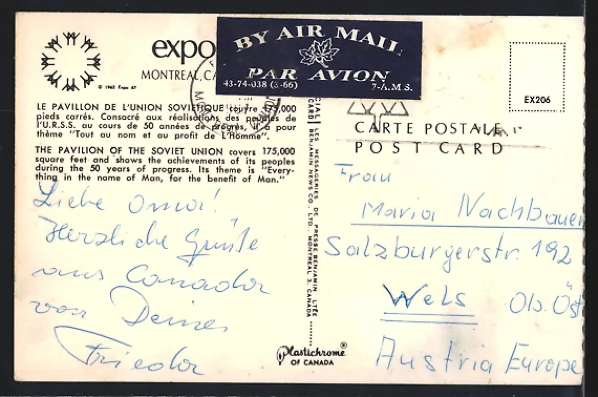 AK Montréal, expo 67, Le Pavillon de l`Union Sovjetique