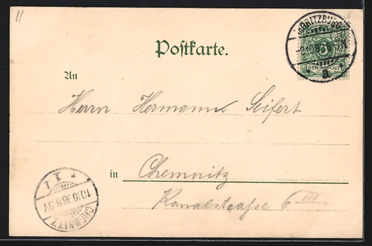 alte Ansichtskarte, gelaufen 1898, Eckknick oben rechts, guter Zustand