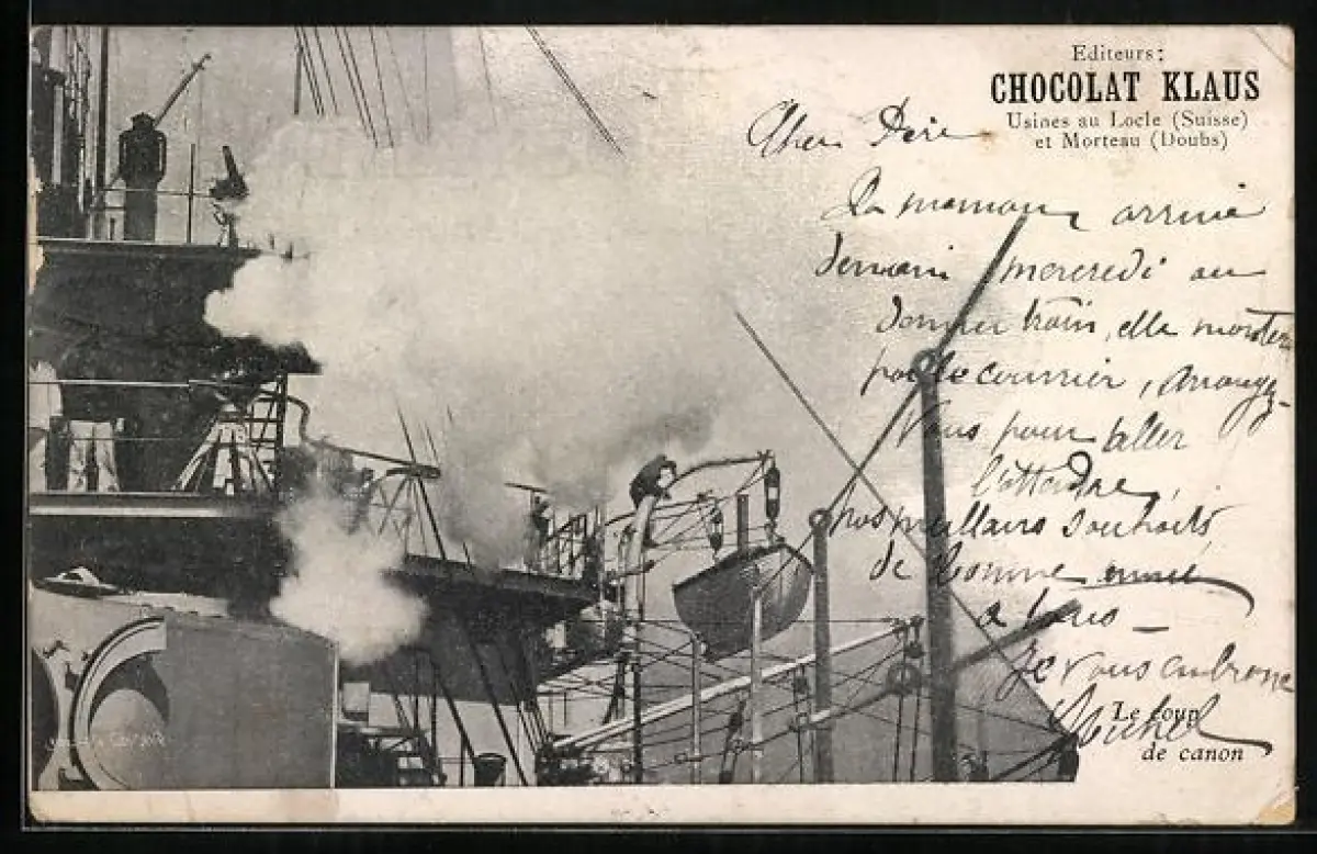 AK Morteau /Doubs, Chocolat Klaus, Locle, Rauch an einem Schiff, Kakao