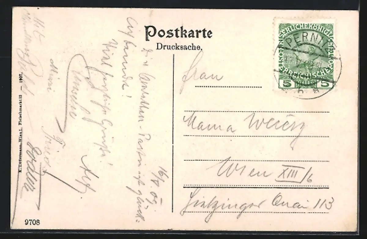 alte Ansichtskarte, gelaufen 1909, guter Zustand