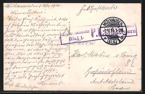 alte Ansichtskarte, gelaufen 1914, guter Zustand