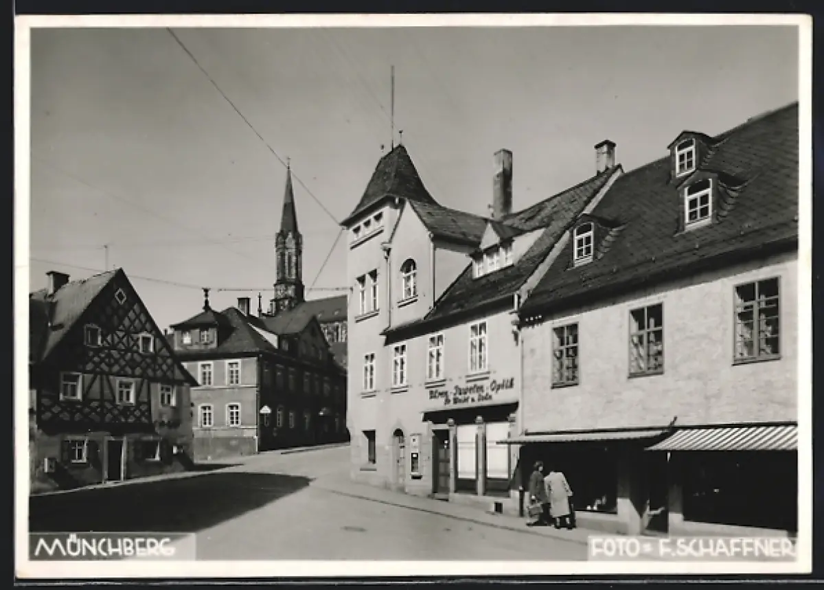 AK Münchberg, Strassenpartie mit Fachwerkhaus
