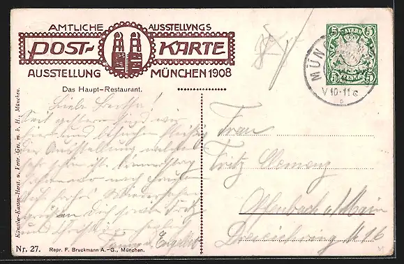 AK München, Ausstellung 1908, Das Haupt-Restaurant