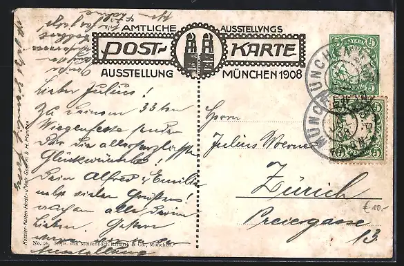 gelaufen 1908, Ecken bestoßen, guter Zustand