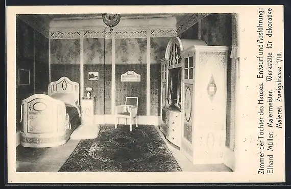 AK München, Ausstellung bemalter Wohnräume 1910 - Zimmer der Tochter des Hauses