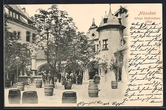 AK München, Königl. Hofbräuhaus, Partie im Hof, Privat-Stadtpost Courier