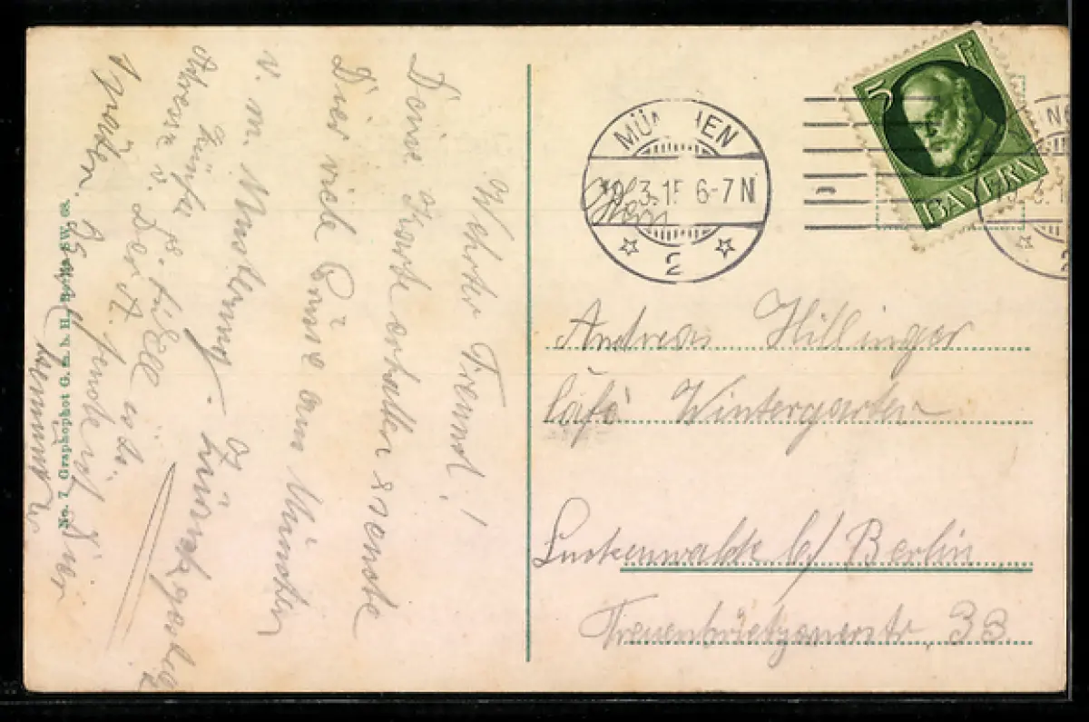 alte Ansichtskarte, gelaufen 1915, Eckknick re. unten, guter Zustand