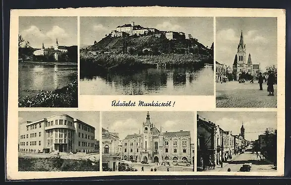 AK Munkács, Schloss, Rathaus, Strassenpartie