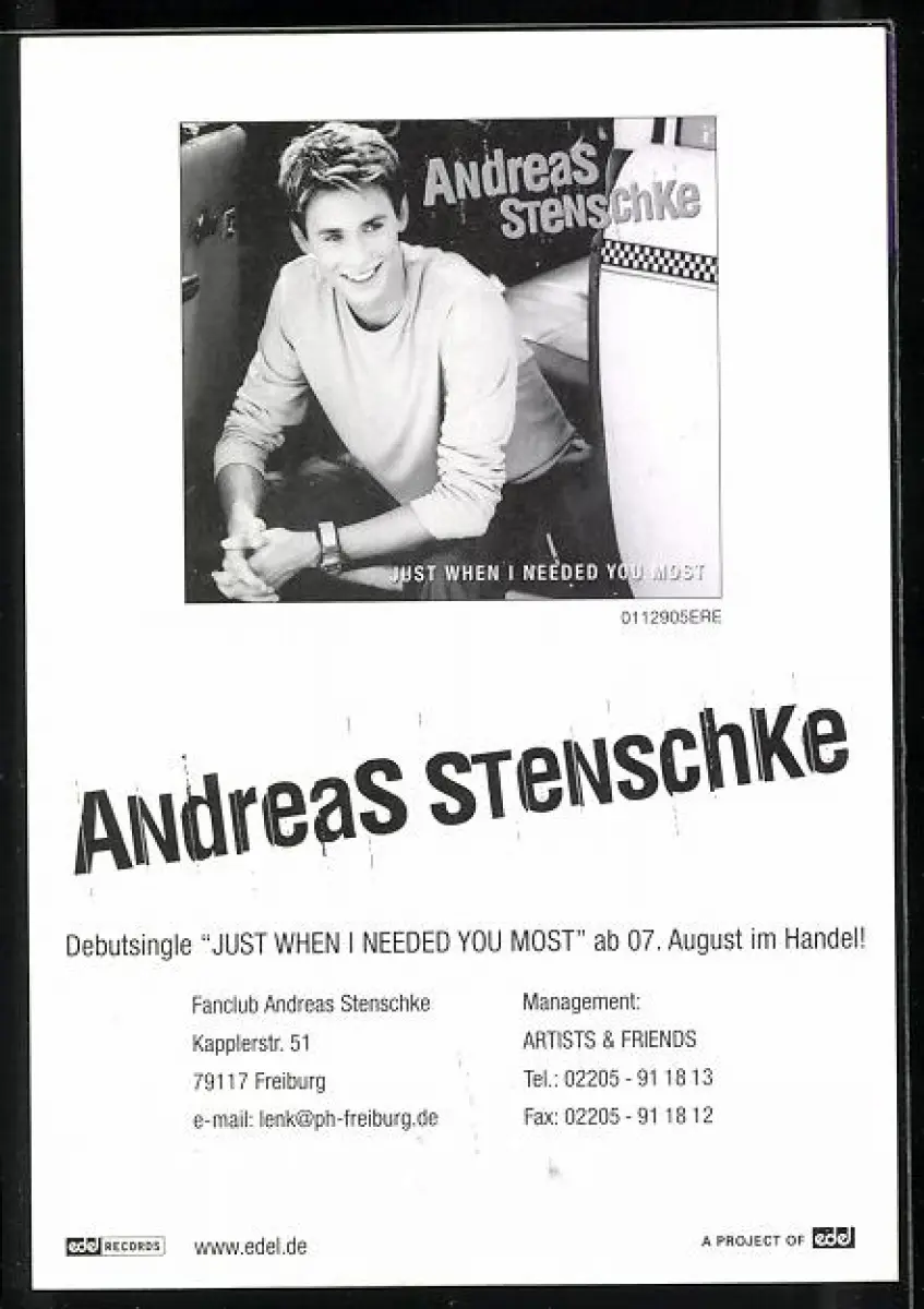 AK Musiker Andreas Stenschke lächelnd im Porträt, Autograph